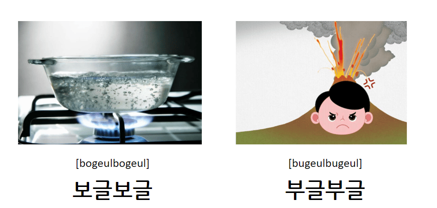 ๋ณด๊ธ๋ณด๊ธ is the sound or shape of a small amount of liquid boiling or small bubbles.