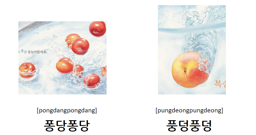 ํ๋นํ๋น is the light sound when a small and hard object falls into the water.