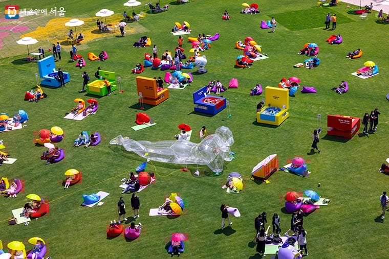 It will be operated as an โurban living roomโ where the whole family can relax under the open sky. There will be new "family beanbags" where families, couples, and friends can sit and read together, and a โcreative playgroundโ in the center of the plaza will be expanded to make it a happy place for moms, dads, and kids alike.